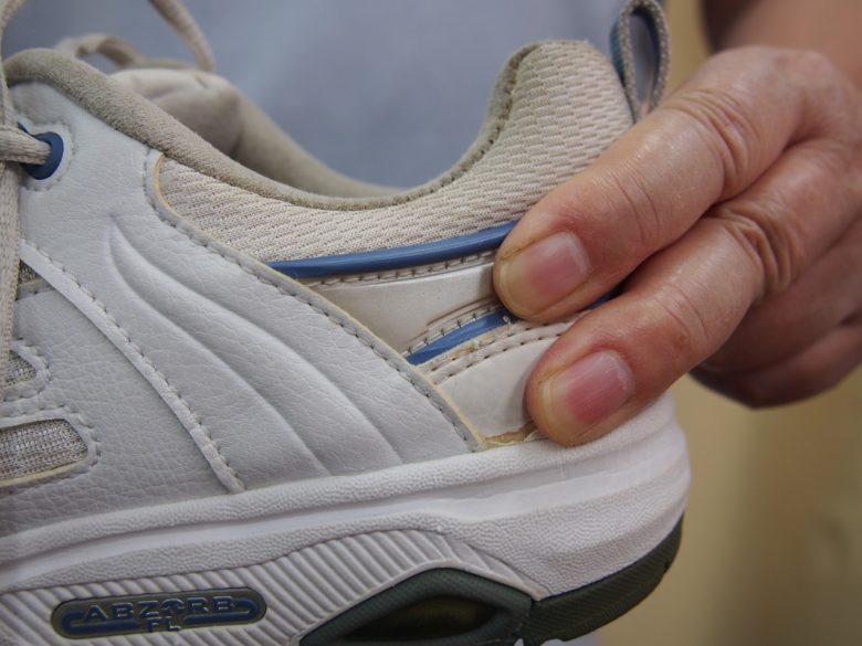 足を矯正した状態でインソールを挿入出来るように靴を調整します。
