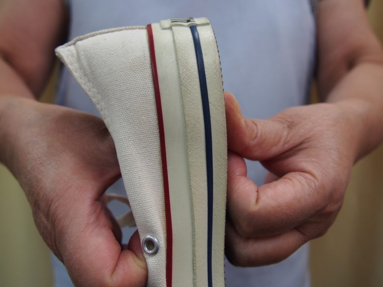足を矯正した状態でインソールを挿入出来るように靴を調整します。