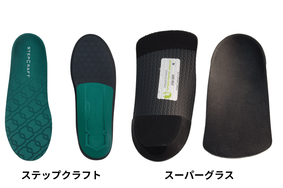 軽度な歪みはノースウエスト社のステップクラフトやスーパーグラスなどの矯正機能があるフットベッドなどが有効です。
